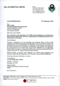 SAL Intimation for re-appointment of ID