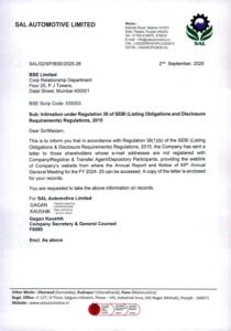 SAL-Web Link Intimation for annual report and Notice of AGM 2025